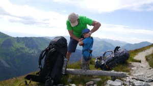 Tekst en beeld bij de hikingavonturen van een jong gezin