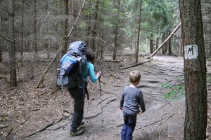 Tekst en beeld bij de hikingavonturen van een jong gezin