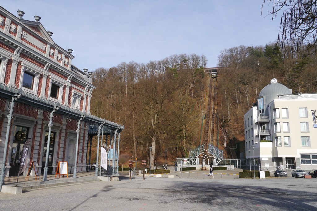 We vertrekken in Spa om 13u25 en gaan door de stad, die er winters en zonnig bij ligt, omhoog over enkele asfaltwegen. Als snel pikken we de GR op die ons de stad uit leidt. We passeren het eindstation Spa-Géronstère. Het is van in mijn studententijd geleden dat ik hier nog met de trein ben geweest! Louis vindt het stijgen maar niets maar eens we de bosrand bereiken en brugjes zien is hij enthousiast. Benji coördineert waar we naartoe moeten. De route slingert nu langs la Picherotte, een smal beekje waarover talloze brugjes gelegd zijn. We slingeren van de ene over na de andere. Het is een mooi open bos, een beukenbos om precies te zijn. Het gaat omhoog en als we even later een weg over gestoken hebben komen we aan een afdakje waar we een eerste keer pauzeren.