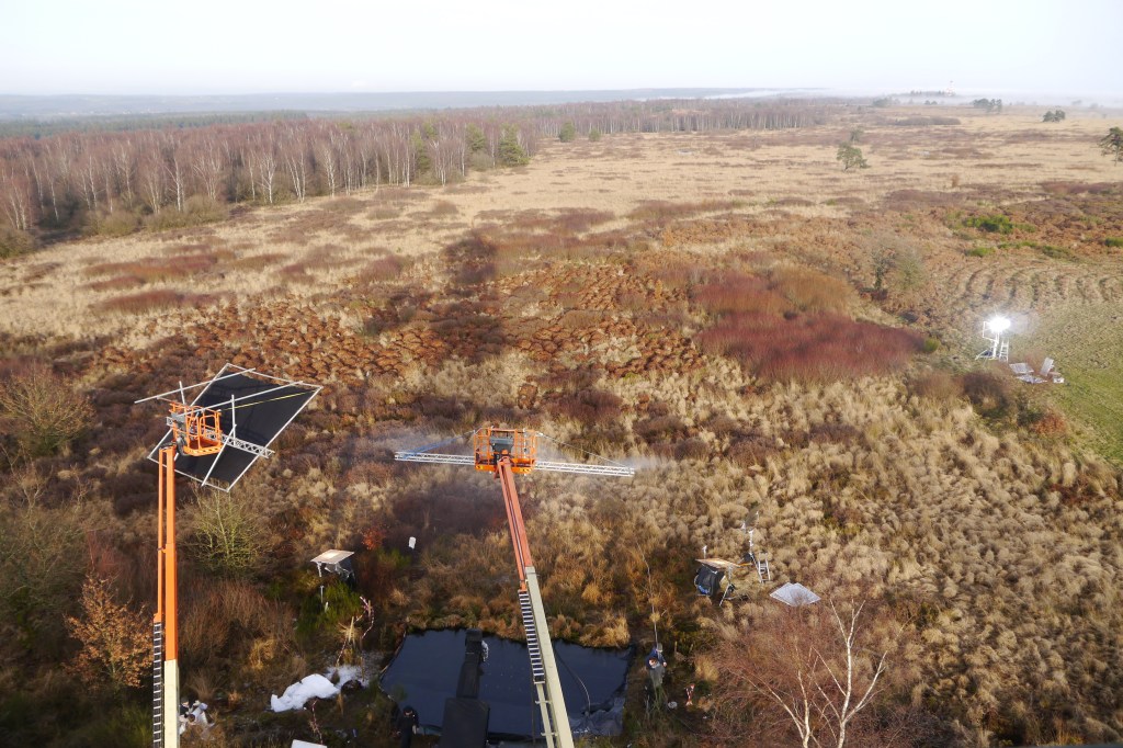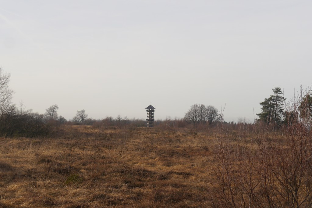 Benji en Louis kunnen het heel goed vinden. Louis vertelt honderduit over de basket, games en noem maar op. Benji gaat er helemaal in mee. De dames praten ook vlotjes. Ik hoor wat over den trouw, de huwelijksreis, het huis enz. Het is aangenaam weer en al bij al niet koud. We stijgen verder richting Fagne de Malchamps. We wandelen nu over een route die ook bekend staat als Les Eaux de Spa. Het is een mooi ven en niet veel later zien we een serieuze uitkijktoren. Louis vindt hem niet hoog: “dat is nogal ne kleine zeg”. We stappen verder over wat vlonderpaadjes en als we de toren naderen zien we dat er opnames bezig zijn. Voor een reclamefilmpje van Spa zo blijkt. Eén van de veertig crewmembers legt ons even het opzet uit. We pauzeren aan de toren en gaan de meer dan 40 treden omhoog. We krijgen een mooi zicht op wat er zich onder ons afspeelt en het toffe uitzicht op de omgeving. We dalen terug af en eten nog een koekje. “Dit was de tweede pauze he Louis” zegt Benji en we gaan weer op pad.