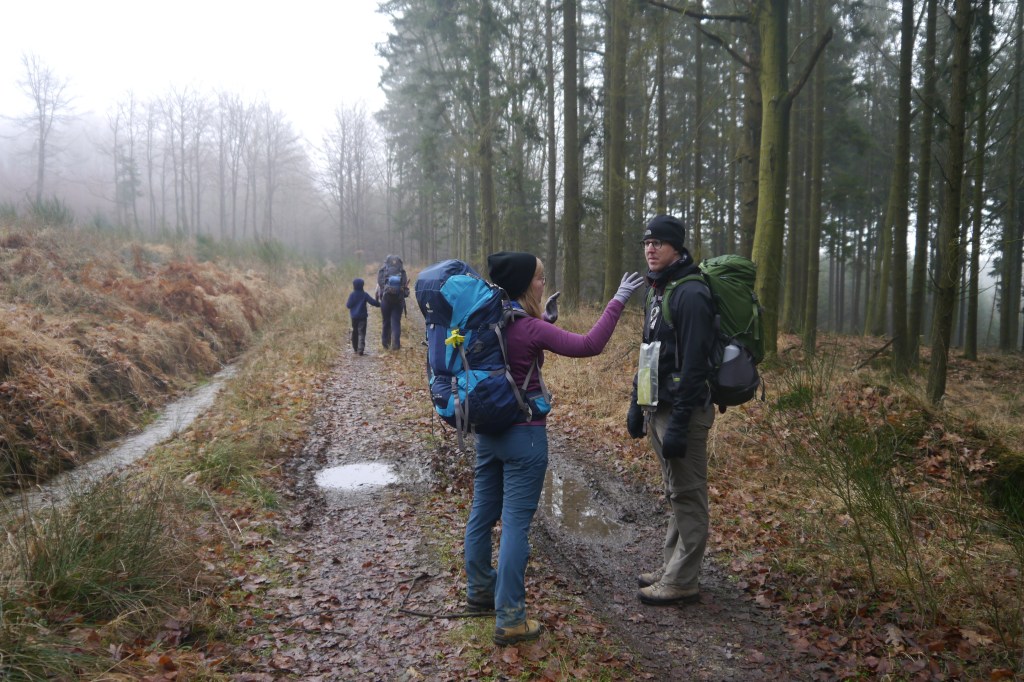Normaliter gingen we met Benji en Marjolein op sneeuwschoenentocht in de Ardennen maar door het warme weer – en gebrek aan sneeuw – komt het daar dus maar niet van. Omdat we nu al enkele weekends geduld moeten oefenen besluiten we om er toch maar op uit te trekken. Omdat Louis (6j) ook meegaat maken we er geen al te stevige trektocht van maar slechts een micro-avontuur van ongeveer 24km. Benji neemt ons op sleeptouw. Hij wil eens nagaan of ik mij laat leiden ;).