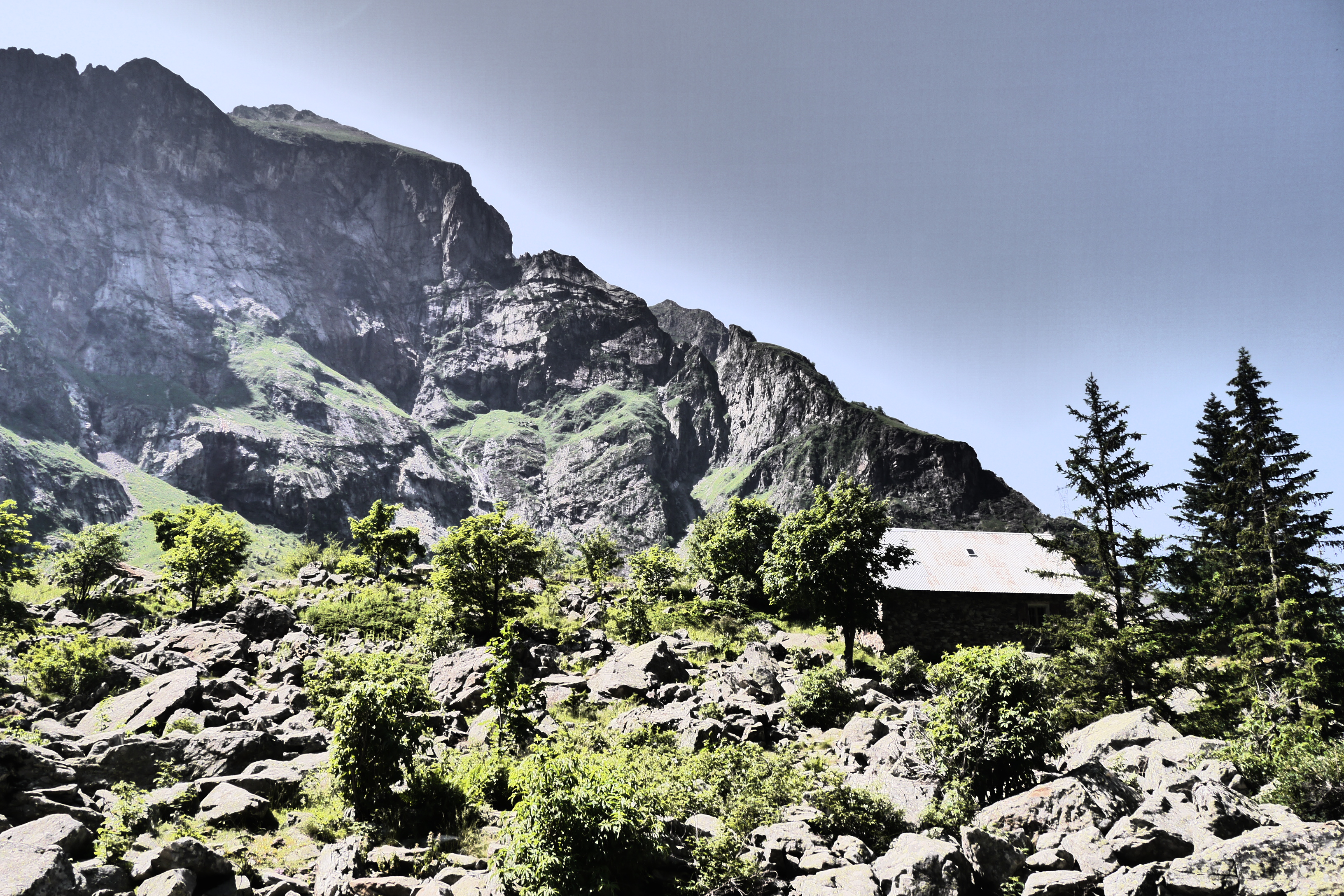 Ik vertrek een dagje eerder dan de rest naar La Bérarde om er in de fijne Chalet Alpin de la Bérarde voor een spotprijsje te overnachten (het is goedkoop voor leden van een alpenclub/federatie zoals de Vlaamse KBF). Op zondag trek ik vroeg in de ochtend naar Saint Christophe en Oisans voor een Via Ferrataparcours van 2.5 uur. Ik ben de eerste dus het gaat goed vooruit. Ik ben reeds na 1.5u klaar. Het is soms pittig maar over het algemeen is er niet veel overhang. De zon schijnt dus het is prettig maar warm op de flanken. Na het passeren van een herder met schapen daal ik rustig af naar de wagen om naar Le Bourg D’Oisans te rijden en nog wat last minute inkopen te doen voor de tocht. Na het winkelen pik ik er Astid en Eva op die ook net toegekomen zijn in de streek. Christophe verkent op z’n eentje Alpe D’Huez en de anderen zijn nog onderweg. We rijden na een korte picknick aan het water naar de camping en installeren er onze tentjes en de tarp. Als de zon verschijnt is het bakken… dat belooft. Christophe komt ook toe en niet veel later verkent hij met de dames de hoger gelegen waterval waarnaar de camping genoemd werd. Ook de rest arriveert en na een korte depackage (alles uit de rugzak uitstallen en overlopen als check-up om niets te vergeten) gaan we apperitieven en iets eten bij La Ginguette. We overlopen de tocht, het opleidingsprogramma en de eerste vragen. De 3×3 formulieren worden doorgegeven om na te gaan wat er geleerd kan worden van elkaars voorbereiding. Bij het vallen van de avond kruipen we de warme tenten in en genieten van het ruisen van de rivier langs de camping.