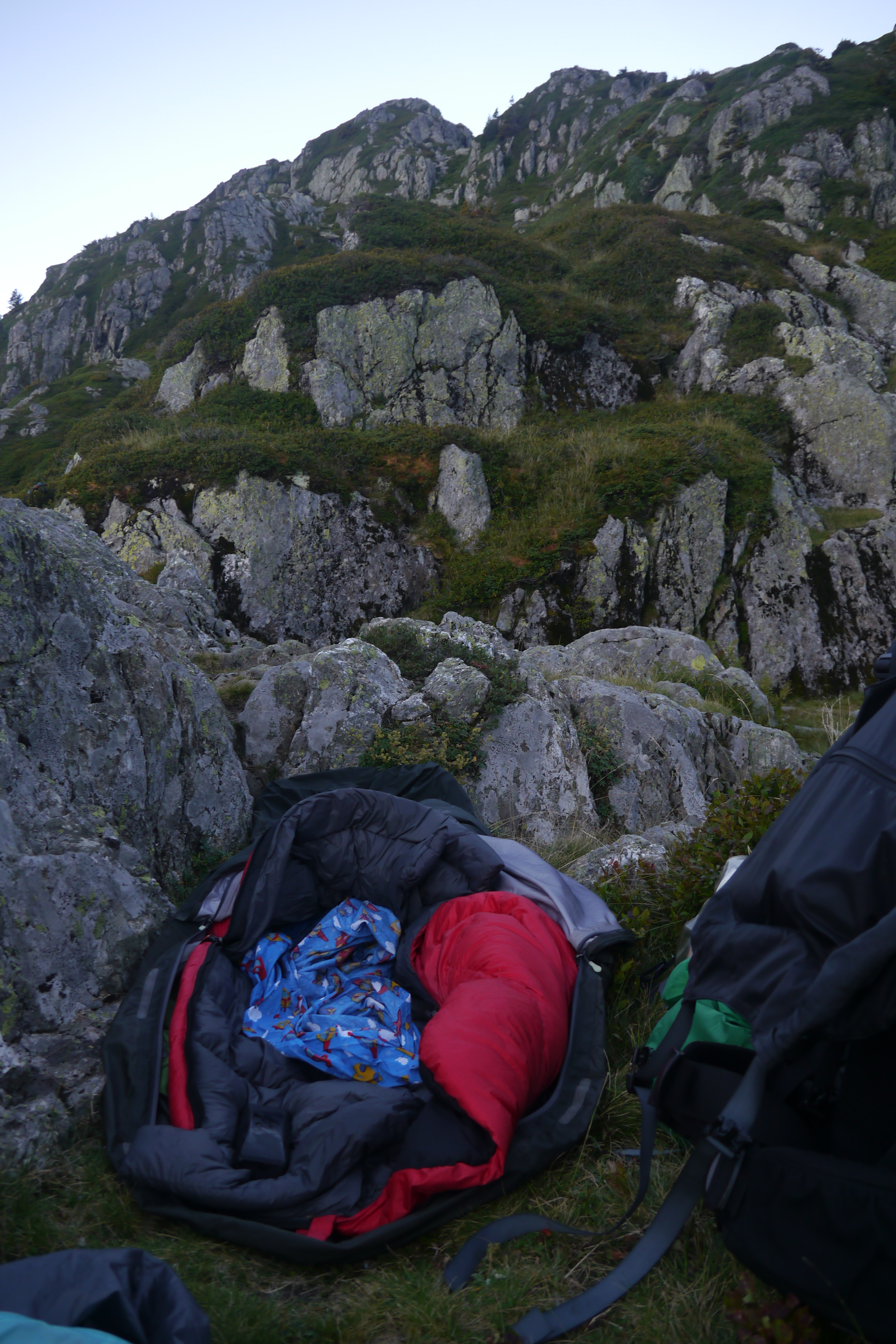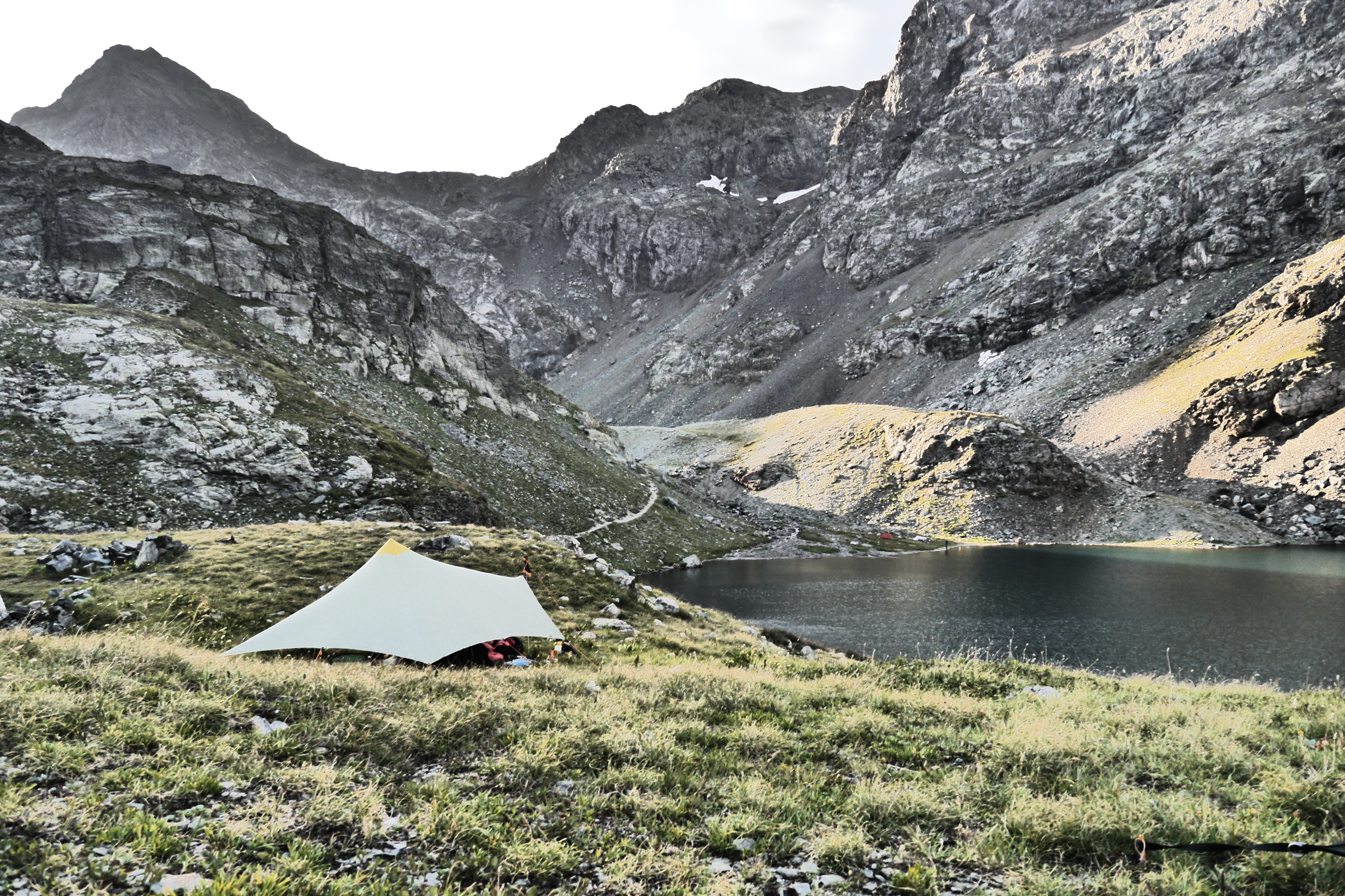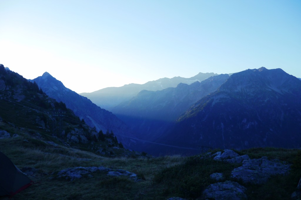 Overnachten is in de Belledonne makkelijk. Er zijn diverse refuges (bemand) en enkele abri’s (onbemande hutjes). Wij kozen voor een wildbivak die bijna overal is toegestaan in de streek (m.u.v. de zones waar schapen aan de hut verblijven).