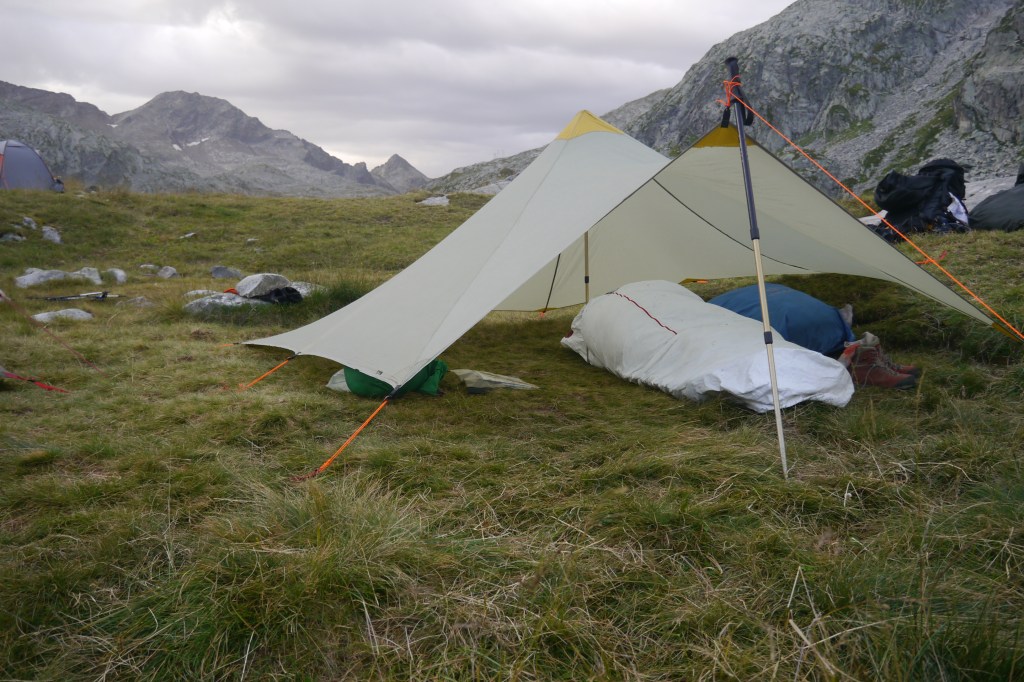 We bespreken het incident in de groep want zoiets laat wel indrukken na. We objectiveren de situatie, analyseren de feiten, overlopen de procedures die doorlopen werden en kunnen zo tijdens het eten de adrenaline laten zakken. De tentjes worden opgezet en ook ik installeer mijn tarp. Nicks voet is nog niet helemaal de oude maar het lijkt al bij al goed te gaan. We overlopen de route van dag 2 en kruipen vervolgens bij het laatste licht onder de wol.
