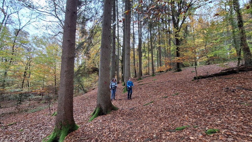In de herfst trekken we er altijd graag op uit bij het kleuren van de bladeren. Zo ook dit jaar. We trokken met de wagen op iets meer dan een uurtje naar Hockai waar we onze wagen parkeerden nabij de Pont du Centenaire. Hier pikten we, dat zijn Cynthia, Louis (11j) en ikzelf, een zelf ineen gestoken route op. We stijgen meteen rustig omhoog via La Vécquée naar een hogergelegen bos. De mengeling van loof- en naaldwoud geeft heel wat kleur aan de omgeving. Regelmatig passeren we oude grenspalen die zo her en der in de omgeving lijken te staan.
